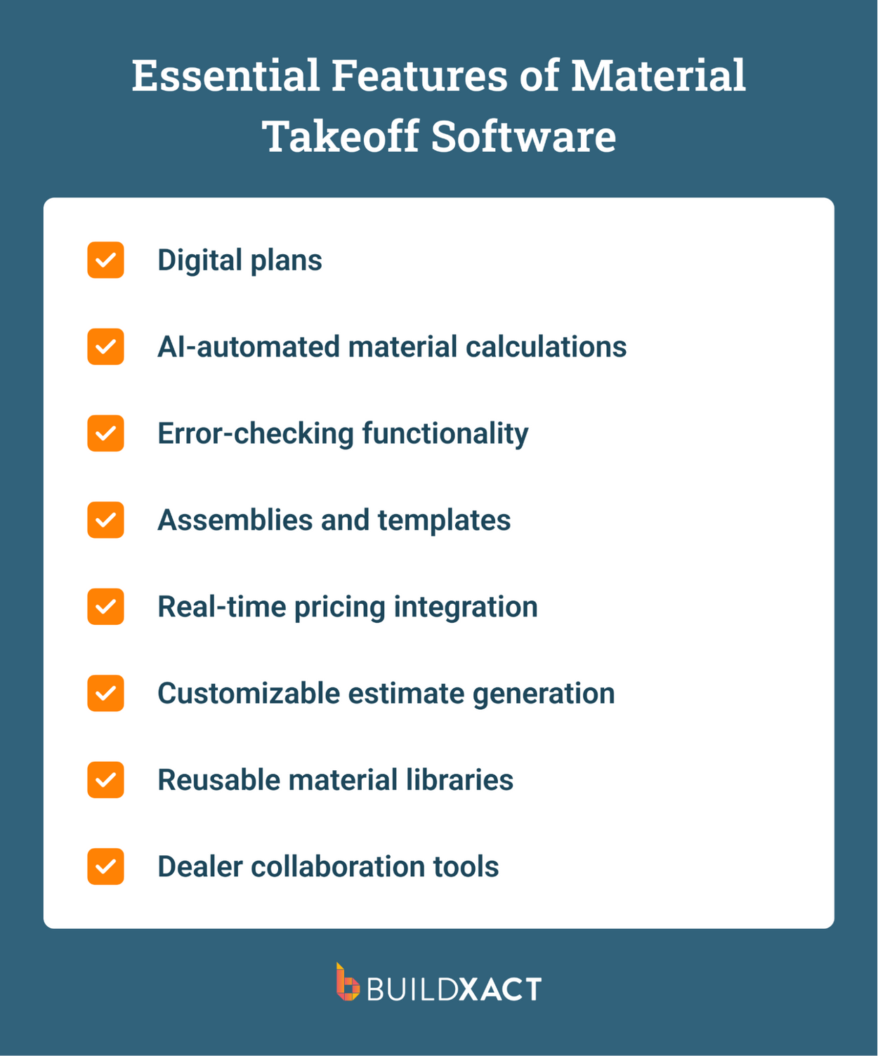 That’s where digital takeoff tools really shine. The visual below walks through each step of the material takeoff process, showing how builders can use these key components to develop a step-by-step approach to conducting smoother and faster construction material takeoffs.