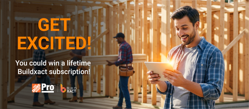 No Purchase Necessary. Ends 4/19/26. Open to U.S. Buildxact customers and Buildxact Go Users 18+. Each eligible Buildxact→The Home Depot order ≥$250 (submitted, paid, fulfilled) = 1 entry.. AMOE available; see Official Rules. Grand Prizes: 1 × Buildxact Master Subscription Lifetime Memberships (FMV $42,770). Void where prohibited. Sponsor: Buildxact. The Home Depot is not a sponsor. Winner subject to Federal, State and Local tax obligation