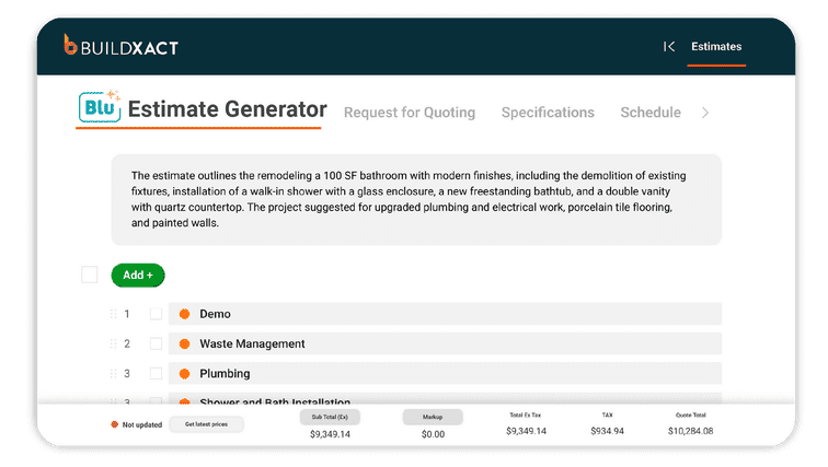 Buildxact gives you an entire digital toolbox for comprehensive home construction management. Save time on bid requests with efficient takeoffs, estimates, schedules and invoices. Buildxact makes construction project management easy with office-to-job site scheduling, accounting integration, cost tracking, and more.