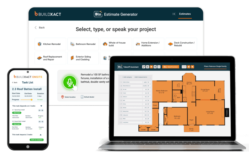 Blu is powered by AI, trained on thousands of real residential projects and built right into your estimating and planning workflow. Whether you need an estimator, a takeoff specialist, an auditor or a pricing agent, Blu steps in-so you can wear fewer hats and get the job done faster, smarter and with confidence.